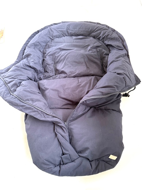 Produktinformationen "Polar Daunen - Winterfußsack, Fußsack für Kinderwagen, Schlitten, Kinderbett - marine - Bei Bedarf Schlitze für die benötigten Höhen der Schultergurte selbst anlegen (einfassen)"
